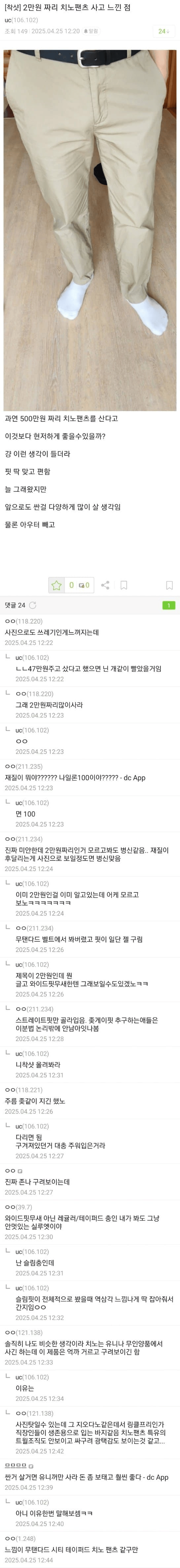 2만원 짜리 치노팬츠 착용후기에 달린 악플들
